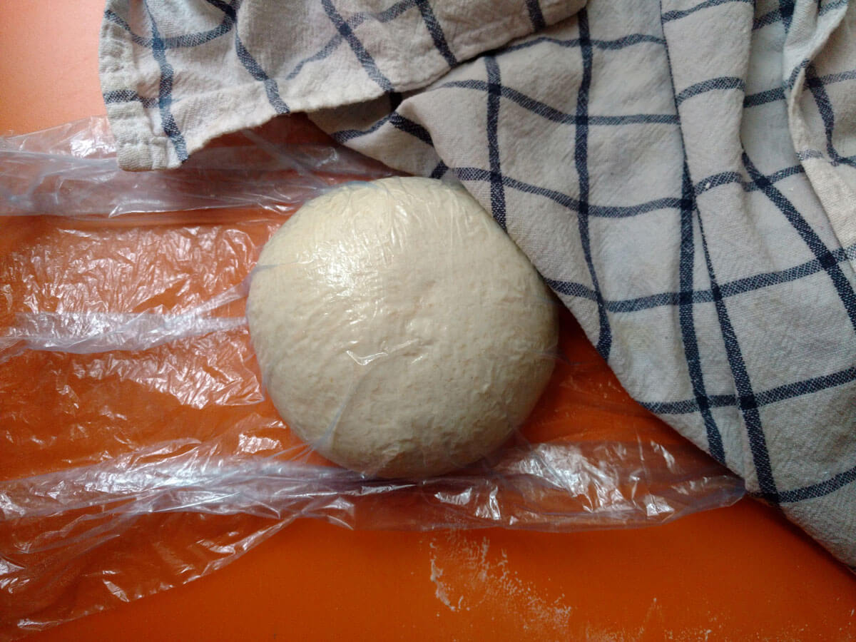 Colocamos en una superficie y cubrimos bien para que no se seque, y dejamos reposar durante una hora o más hasta que el volumen se doble.