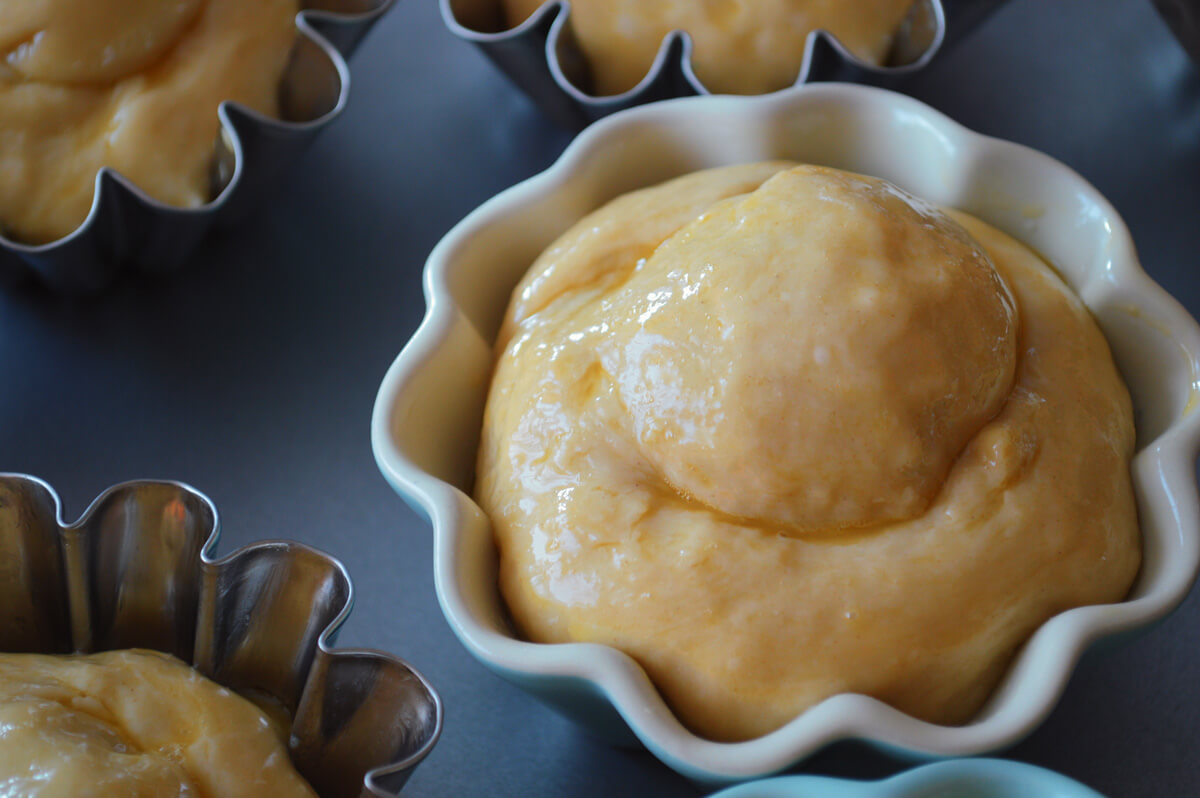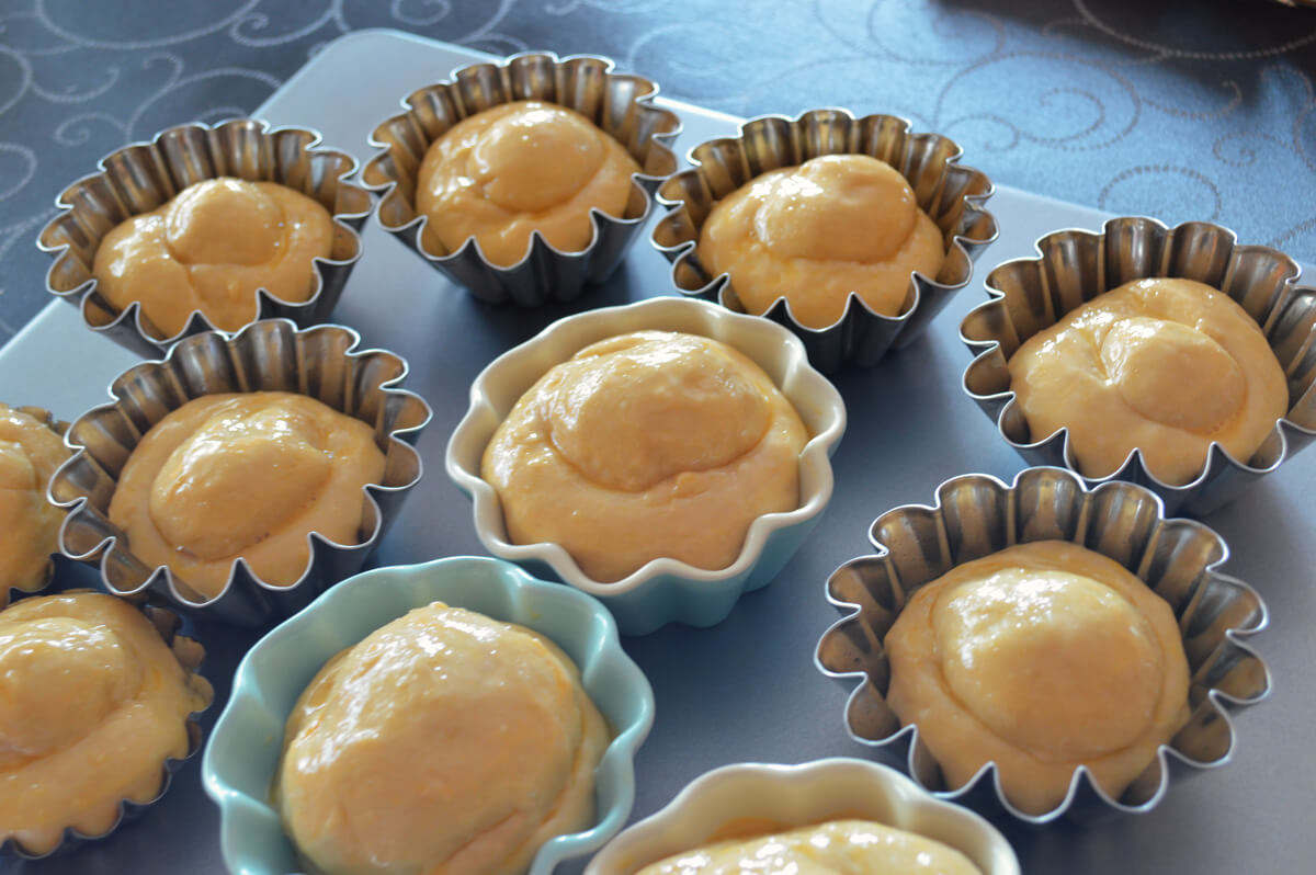Después de esto sólo queda depositar nuestros brioches en los moldes engrasados, y esperar una hora y media a que terminen de subir.