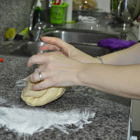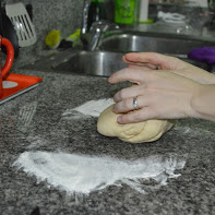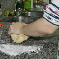 Luego, sacamos la masa del bol y amasamos a mano ( como se muestran en las fotos)