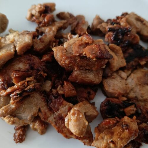 Dejamos marinar la carne junto con la mezcla anterior unos minutos y después pasamos por la sartén a fuego medio alto, podemos acompañar con arroz blanco, ensalada o lo que os apetezca.